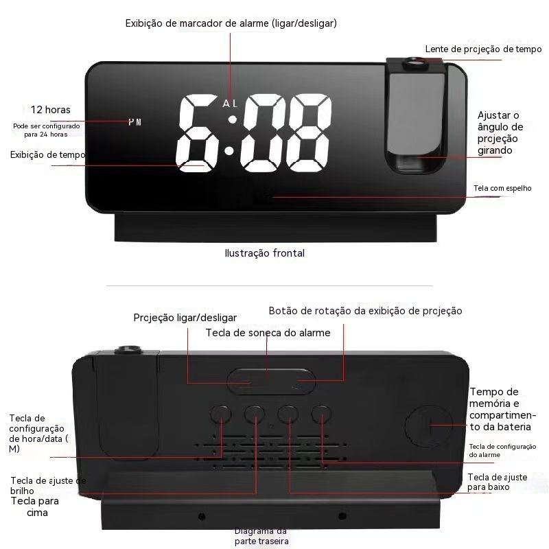 Relógio de despertar com projeção inteligente